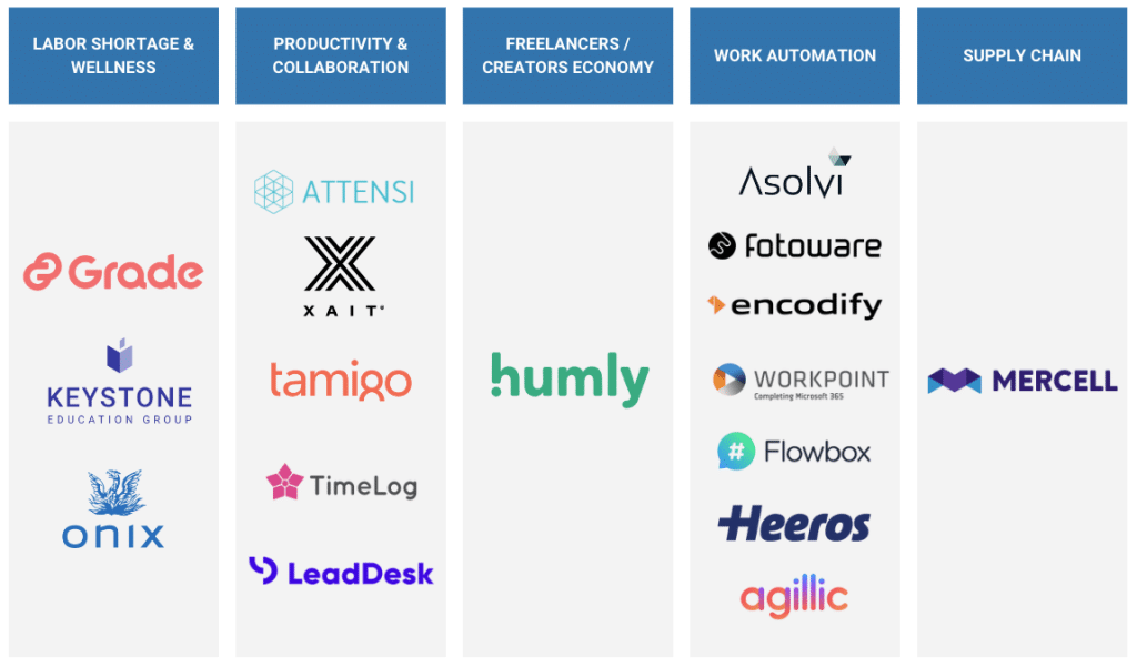 So why is B2B SaaS still such an attractive market? B2B SaaS companies will help solve the global productivity gap. Population growth rates are declining, so fewer people must do more. That means they will be reliant on software that supports work processes. If we look at our portfolio today, we have companies helping solve issues with labor shortages, productivity and collaboration, the creator’s economy, work automation, and supply chain.